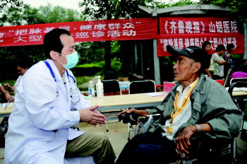 郭辛村的老人都集体住在村办养老院,院方在选择义诊地点上省去了不少麻烦。医护人员耐心细致地为老人接诊,逐一倾听老人病况,详细为老人解答困惑,并到行动不便的老人家里,上门看病。