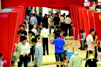 26日上午,和谐广场人头攒动,统一规划、统一搭建的购房节展台一目了然,让不少逛商场的市民都忍不住前往一探究竟。