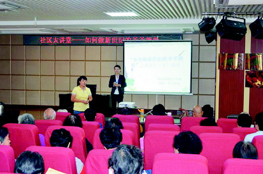 本报讯(记者 张九龙 通讯员 朱怡飞) 9月16日,历山路社区大讲堂正式开课了,社区特邀中学高级教师、山东师范大学硕士研究生、北京大学心理学博士、省青少年习惯养成中心主任郭鑫,来为居民们讲了一堂以“如何做新世纪的爷爷奶奶”为主题的课程。