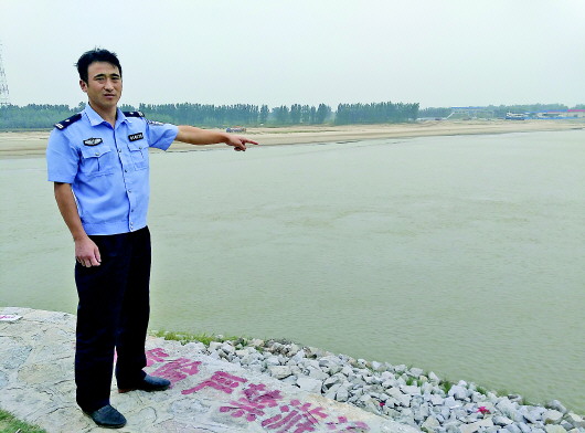 民警所指地方便是男子溺水位置。记者 梁越 摄