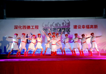 9月22日,“深化四德工程,建设幸福高新”高新区健身广场舞大赛在谷德广场举行。本次大赛旨在丰富活跃群众精神文化生活,大力弘扬社会主义核心价值观,使“孝诚爱仁”的“四德”观念深入人心。经过各街道(发展区)层层选拔推荐,最终13支参赛队伍进入到了当晚激烈角逐。新钢发展区街道孙家庄子社区选送的《四德歌广场舞》荣获一等奖。