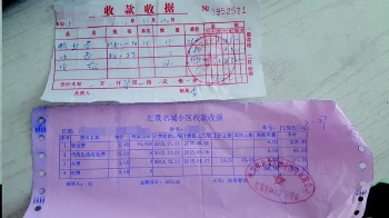 29日上午,记者来到位于寒亭区通亭街与丰华路交叉口东北角的汇景名城小区。刘先生告诉记者,一直以来,小区水电费都是由物业公司工作人员代收,居民需要到小区物业购水、购电。因为本身用水用电也不算太多,自己对水电费原本是多少钱也没什么概念,但有一次听邻居说起水电费比别的小区高,自己才找出以往的收费票据仔细比对了一番。“最近一次缴费是今年的5月27日,那时的电费为每度0.58元,水费为每方3.65元。但看看2014年12月份的票据,水费虽然没变化,但电费为0.5496元,这样看来,电费确实涨了些”,刘先生说,但是现在寒亭区物价局定的水费是每方3.2元,电费是每度0.5496元。