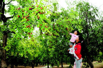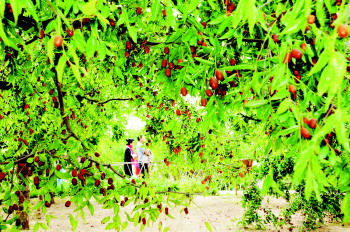 百枣园里享受采摘乐趣的市民。