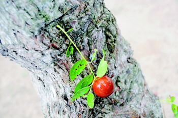 主干上长出的一颗红枣。