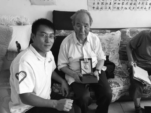 近日,安利志愿者王战滨、李鲁斌等人来到沾化县古城镇,慰问97岁高龄的抗战老兵冯子彬,为他送上了中秋礼物和祝福。随后,志愿者又看望了邹平县93岁的抗战老兵李玉夏。