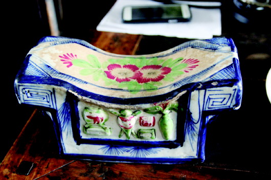 凉枕:清早期,图案为花、水果等,长20cm。参考价格:500元。