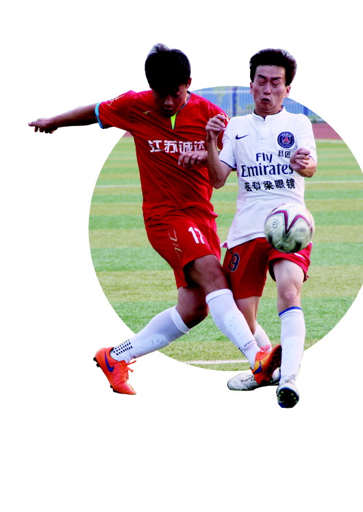 ◥青年人和半岛蓝湾在球场上比拼。 本报记者 王领娣 摄