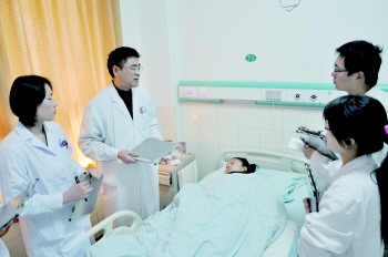 王涛正在病房内查房。