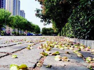 秋风起,路旁的树木纷纷落叶,金黄色的叶子随风翩然而下。29日枣庄出现大风天气,风力达到3至4级。预计30日枣庄还会有小雨出现,望市民注意准备雨具。 本报记者 袁鹏 摄影报道