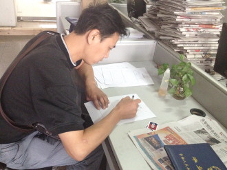 29日,市民王先生带着齐全的证件前来报名,希望能在报名表上展示最真实的自己,找到有缘人。 本报记者 王开元 摄