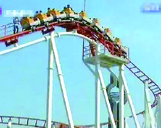 过山车卡在最高点不能动弹。(网络截图)