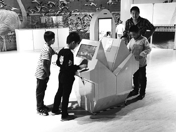 孩子们在体验实景模拟驾驶。 本报记者 汪泷 摄