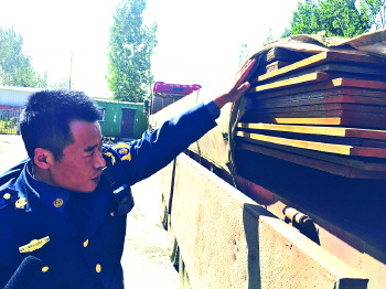 “这辆车行驶时没有将车厢两侧门关闭,根据执法队员多年经验,应该是货物太宽,导致无法关闭。”济宁市交通监察支队执法队员徐勇说,猛地一看,这辆货车车厢还没有装满,实际上拉的钢板特别重。经过检查,车上钢板总共21块,一块就有一两吨重。