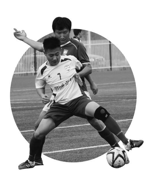 ◥山东一卡通与鹰眼FC在球场上比拼。 本报记者 王领娣 摄