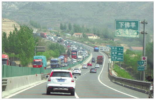 节日期间,小型客车流量大幅上升,该路段车流量一度达到饱和,该路段长上下坡、转弯路段较多,大货车爬坡慢,一旦发生交通事故处置不及时,便会引发交通拥堵,影响车辆的正常通行。且地处山区高速,交通应急分流难度较大。莱泰高速K4-K13东去方向,因为路面维修半幅封闭,西来车辆由莱芜西下高速,绕行沿河路、汇源大街,很多外地司机在此停车问路,致使该路口交通压力加大,一度形成拥挤。