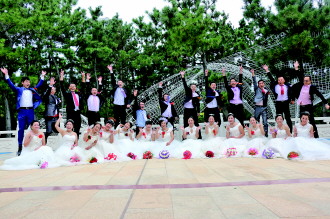 没有奔驰、宝马,没有奢华酒宴。日前,威海市“理想山”公益青年集体婚礼在理想山广场隆重举行,13对新人在众多亲朋好友的见证下,许下了爱的诺言。