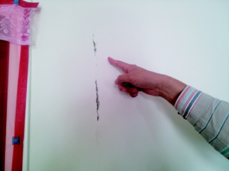 在采访过程中,居住在聚成名都小区5号楼的都先生告诉记者,小区供暖难只是小区居民烦心事之一,而新房出现“裂缝”则是一块更大的心病。随后,记者跟随几位居民分别在2号、4号、5号楼几处居民家中走访看到,几处居民家中的墙体上或多或少出现了细微的“裂缝”。都先生说,“这是我刚装修好,才搬进来住没多长时间的房子,这裂缝都快能塞进一片纸了。”“宣传时讲的是高档小区,这样的房子也没见高档在哪!”一位小区居民抱怨道。