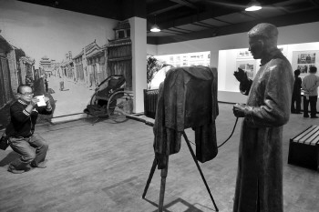 国庆假期,聊城市聊城老照片博物馆开馆迎客。博物馆展览分为岁月遗梦、艰辛历程、激情年代、改革春潮、江北水城几个部分。500多幅照片从清末民初开始,分别以不同历史年代的民飞构画了不同时期的精彩瞬间。馆内同时还展出了百余件老式照相机和胶片等器材。图为游客在参观。