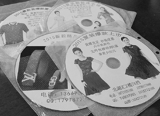 湖南郴州北湖网贸商城内销售的假名牌宣传光碟。