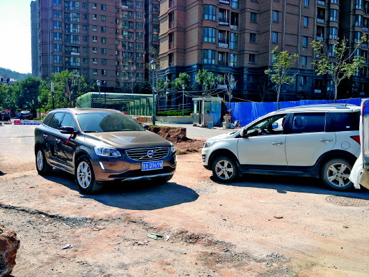 出入口处只有单向车道,错车时只能一辆车停下等着。 本报记者 张玉岩 摄
