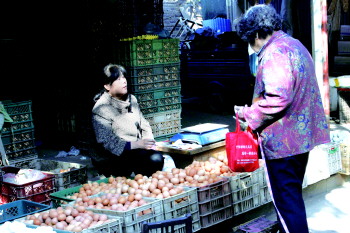 12日上午,张店柳泉路上一家农贸市场内鸡蛋摊位前顾客稀少。受需求减少影响,9月中旬以来鸡蛋价格下跌幅度超过两成,国庆节之后每天跌1角钱左右,已到4元1斤。受此影响,不少养殖场只能保本经营。但部分养殖户认为,目前蛋价接近成本,已难有下跌空间,预计本月底能止跌回升。 本报见习记者 李洋 摄影报道