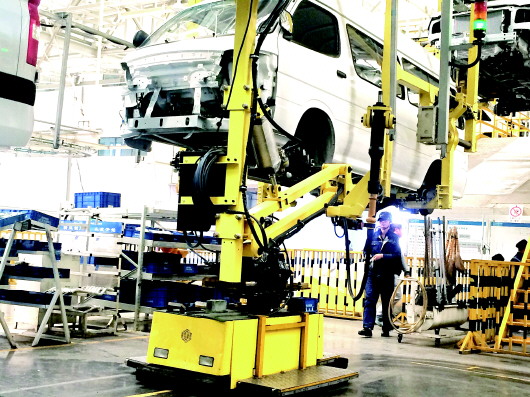 福田汽车山东多功能汽车厂正在生产图雅诺贵宾专用车。