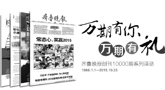 再过几天,齐鲁晚报将迎来第10000期!27年前,齐鲁晚报创刊,从面世的第一刻起,就把自己的命运和读者紧紧联系在一起,同甘苦同悲喜,在无数读者支持下走到了今天。为纪念第10000期的到来,齐鲁晚报网制作了专题“万期有你,万期有礼”,该专题将汇聚“家书”、“我与晚报故事”、“帮你圆梦”等内容。读者可以登录齐鲁晚报网或用手机扫描二维码进入专题,查看精彩内容,并参与投稿、互动。