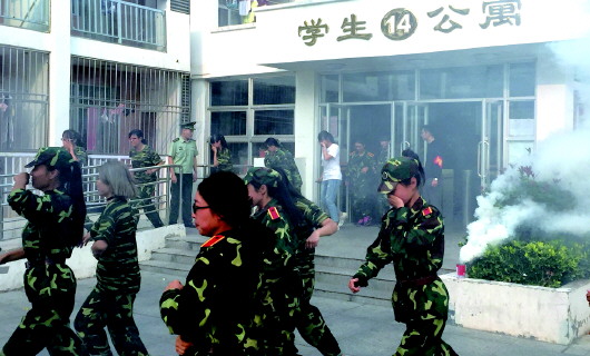 同时,结合实际对干粉灭火器和室内消火栓的使用进行实际操作,并让在场师生亲自体验。培训课生动有趣,极大提高了师生们参与的积极性。培训最后,支队宣传人员组织师生开展应急疏散演练活动,随着警报声的响起,广大学生在培训人员和老师的引导下,弯下身子沿着安全疏散通道有序疏散,顺利安全完成疏散演练任务。