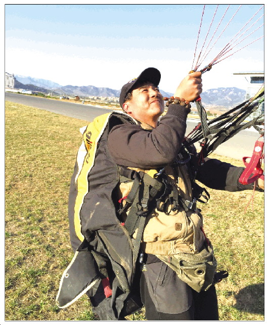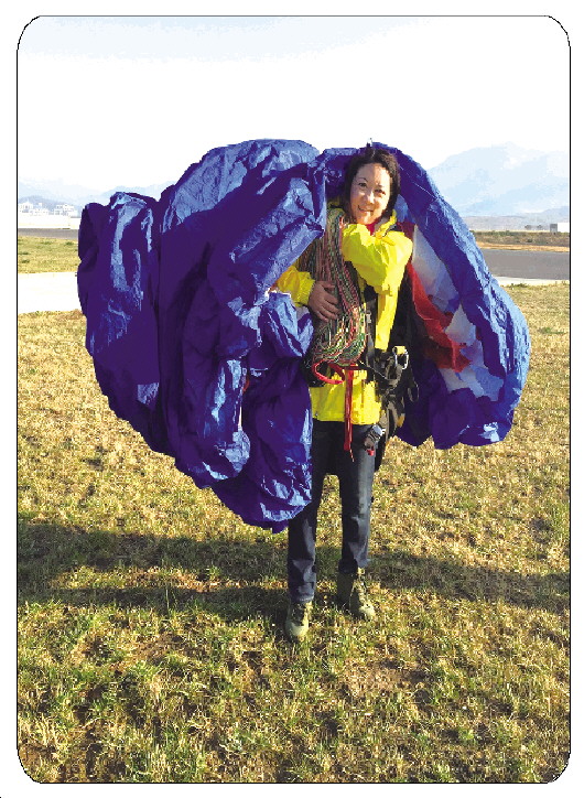 在国内学习滑翔伞的女学员越来越多, 成为一种时尚户外运动。
