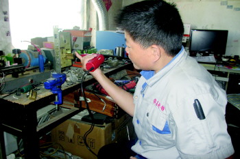 开锁师傅用专用开锁枪,两秒钟就能打开A级锁。 本报记者 刘光斌 摄