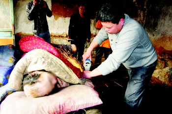 由于锁链十几年没有打开过了,患者的弟弟用电锯将锁锯断。(资料片)