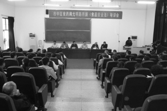 近日,为进一步宣传新的《食品安全法》的实施,市中区食药局光明路食药所联合枣庄三中西校在其会议室对辖区内校园食堂、餐饮配送企业、学生代表等100余人进行了新《食品安全法》培训活动。 本报通讯员 李宗振 本报记者 王开元 摄影报道