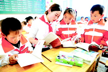 李倩给学生们讲故事。本报记者 黄广华 摄