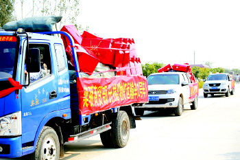 13日下午,4辆轻型卡车载着篮球架、书包、课外书、粉笔,还有赠送给老师的被子,开进了嘉祥县满硐镇育才小学的校园。这些教学物资来自于济宁奕骄商贸公司董事长李倩的捐赠。