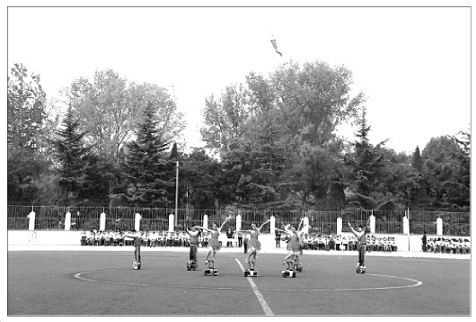 在级部特色活动展示中,学生们表演了无人机、机器人舞蹈等节目,陆地机器人舞蹈《托起明天的太阳》以整齐的手势,优美的舞姿,熟练的操控,体现了艺术、科技与人体的和谐统一,赢得了阵阵喝彩。