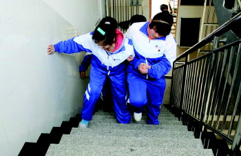 19岁的张明月已经当了同学张月近10年的“生命拐杖”。张明月由于患先天性听力障碍,2005年从高青来到市特殊教育中心就读,与张月成了同学。张月自幼患有小儿麻痹症,行走比较困难。热心肠的张明月向张月伸出了援手,照顾张月的日常生活。
