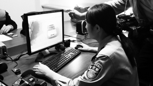民警对自动抓拍的照片进行人工审核。  本报记者 张泰来 摄