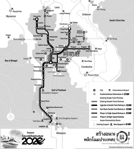 除了“时间节点”,这次研讨会选址呵叻,可谓是确立了“地理节点”。呵叻府地处连接泰国中部和东北部的门户位置,历史上就是泰国的战略重镇,人口260万,仅次于首都曼谷,人均GDP达11万泰铢(约合1.99万元人民币),自然和旅游资源丰富,丝绸、农产品等物产丰富。总长800多公里的中泰铁路合作规划共分为四条线路:即曼谷-坎桂线、坎桂-呵叻线、坎桂-玛塔卜线和呵叻-廊开线,而呵叻府正位于中心节点,距北部廊开府预计修建的铁路里程为350多公里,距曼谷的里程约为270多公里。