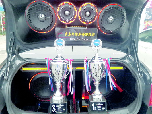 此次山东参赛企业踊跃,显示汽车音响改装市场在我省启动。图为青岛车安利荣获最佳音质冠军。