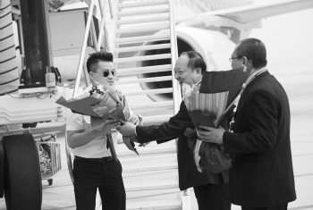 上午11点40分,深圳航空公司ZH9463航班满载79名旅客从烟台蓬莱国际机场起飞,标志着“烟台—香港”航线复航成功。图为烟台到香港航班抵达烟台蓬莱国际机场,乘务人员收到鲜花。 通讯员 田南阳 常震 本报记者 蒋大伟 摄影报道