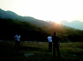 进入山坳时,太阳快要落山了,但还是什么也看不到。