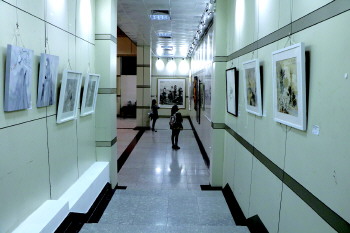 本次美术展共展出油画,国画,水粉,漫画插画等百余件作品。所有作品均由学校美术学院的全体在职教师和历任教师绘作,作品足足摆满了学院美术馆的两层楼。