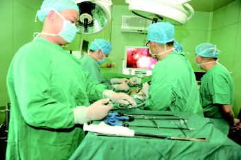 电视辅助胸腔镜外科手术是20世纪90年代以来在胸外科领域发展起来的全新微创外科手术技术,现已被广泛应用于胸部疾病的诊断和治疗中。我院外科腔镜设备先进,技术成熟,现能完成胸腔镜肺部肿瘤切除、肺叶切除、全肺切除、食管肿瘤切除、纵隔肿瘤切除等大部分胸外科手术。