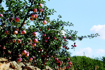 烟台地处胶东半岛东部,这里气候属暖温带,境内丘陵连绵,溪涧纵横,空气湿润,光照充足,昼夜温差大,极利于糖分的有效积累,且土壤为中性偏碱的沙壤土质,含有较丰富的磷、钾、钙、镁等元素,非常有利于苹果的生长。栖霞地处胶东半岛的中心位置,境内以山地丘陵为主,平均海拔178米,属温带季风型大陆气候,年平均气温11. 3℃,平均降水量754毫米,无霜期平均207天,四季分明,气候宜人;秋季昼夜温差大,土壤条件适宜,自然环境非常适合苹果生长。烟台苹果于1871年由美国传教士引进,最早以青香蕉、红香蕉两个品种为主,以后又发展了小国光、金帅,改革开放后引进了红富士、乔纳金等。