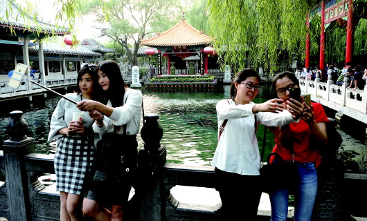 16日下午,趵突泉实时水位暴跌到27.75米,早晨还是27.81米,一个白天暴跌6厘米,跟前几天相比更是跌幅大得吓人。按这个速度,不用几天就会跌到27.60米的最后一道红色警戒线关口。持续干旱和秋种对济南的泉水确实影响太大,保泉警钟该鸣响了。图为游客和不“精神”的泉水合影。 本报记者 周青先 摄