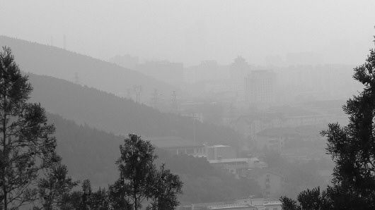 17日下午黄昏,站在千佛山上看济南,只有近处的建筑物隐约可见,远处的都已经迷失了。