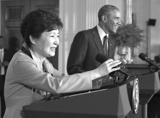 美国总统奥巴马16日在白宫与到访的韩国总统朴槿惠进行会谈并举行联合记者会。双方会谈内容涉及美韩关系、东北亚局势、《跨太平洋伙伴关系协定》等,其中朝鲜半岛核问题成为关注的重点之一。两国领导人此次会晤后表示会强力回应朝方的挑衅行为,但也强调在朝鲜弃核条件下对话的大门仍然敞开。
