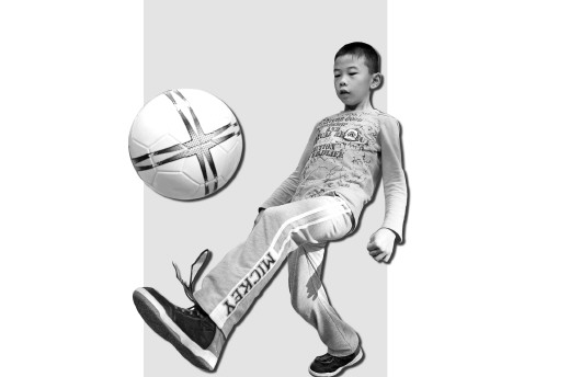 ▲世界杯球童射门。(孙业文 摄)