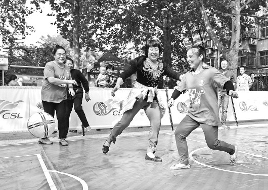 “我们年龄大的能来一场么,也给我们报个名吧!”4位阿姨见气氛热烈,也撸起袖子一副跃跃欲试的样子。哨声一响,别看阿姨们年纪大,但身手敏捷,就是球技差了点,踢了约5分钟才进球!