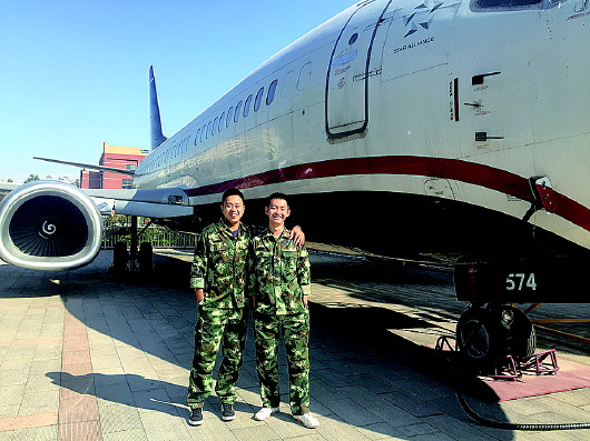 皮冶(左)和郭毅(右)在滨州飞行学院。